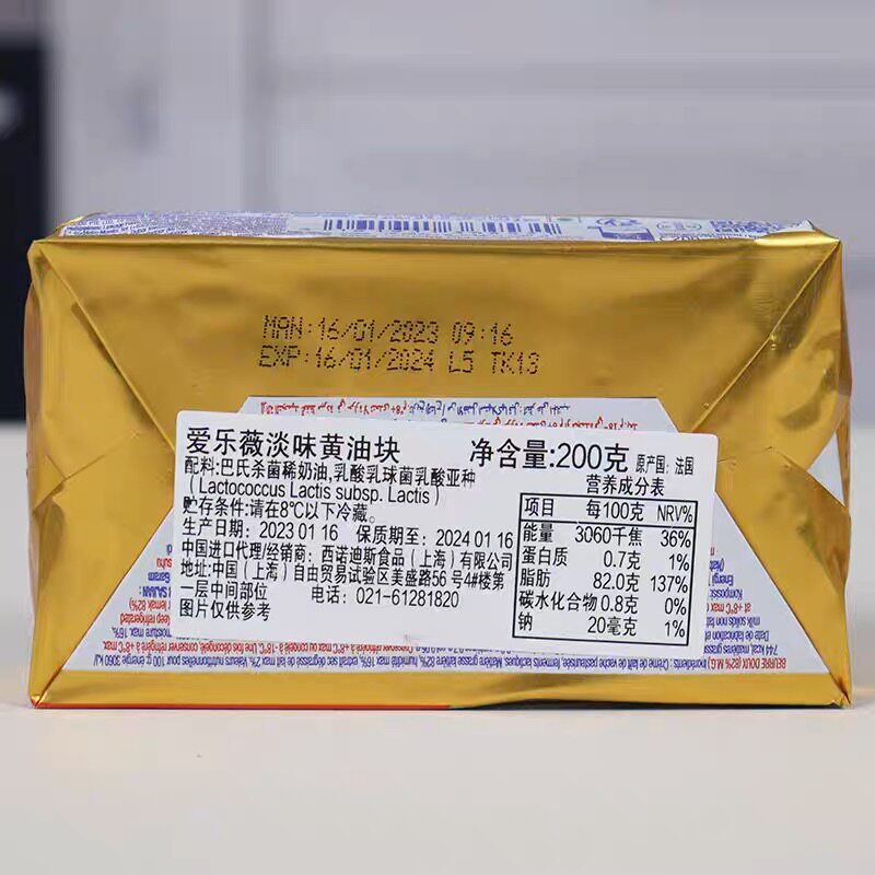 📚 爱乐薇铁塔淡味黄油200g法国家用小块动物性发酵蛋糕饼干烘焙食材