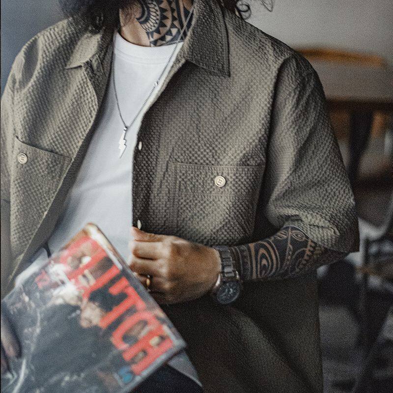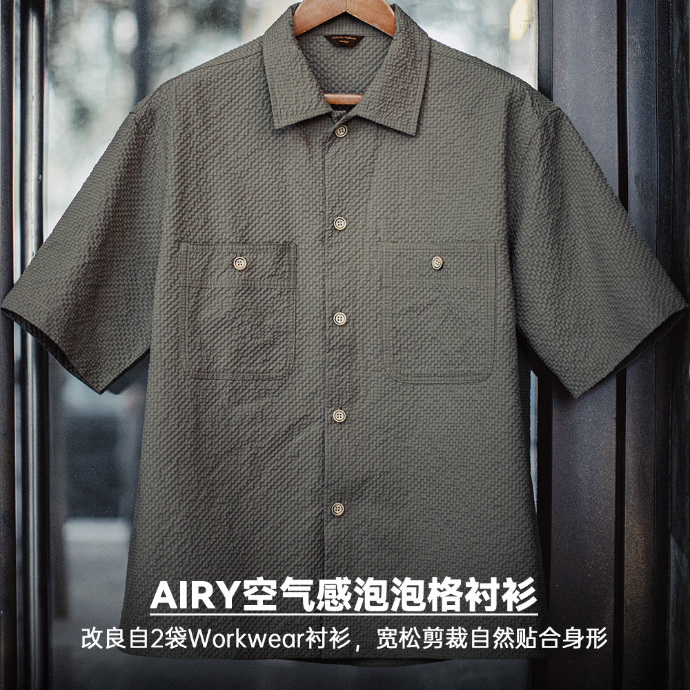 📚 马登工装美式休闲AIRY空气感泡泡纱衬衫透气薄款衬衣外套男春夏