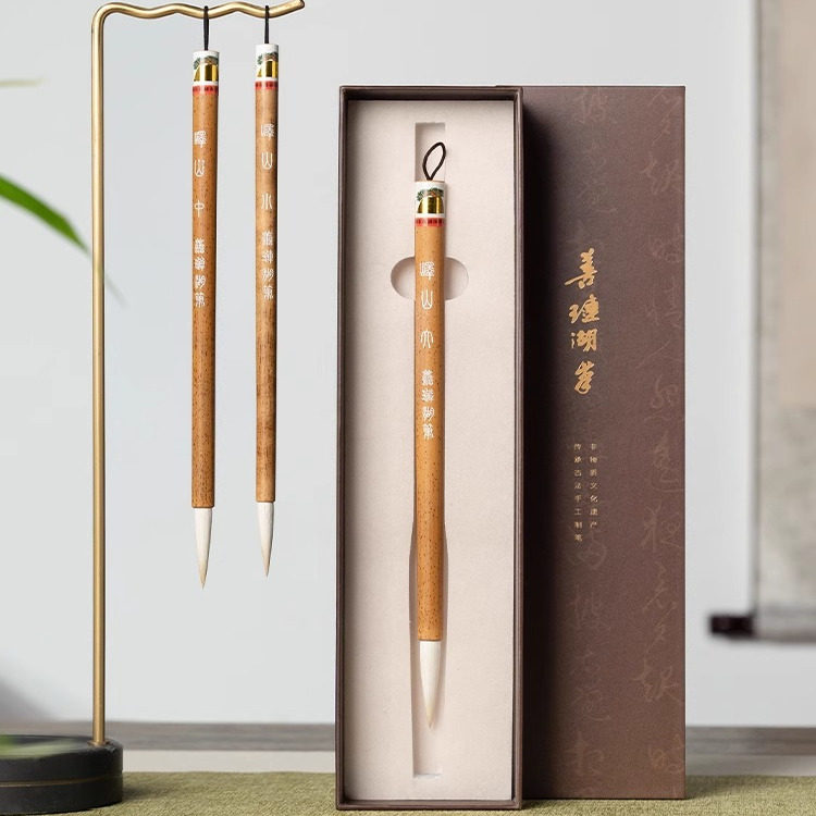 📚 善琏湖笔峄山毛笔书法专用细光锋国画白云软笔湖笔礼盒文房四宝
