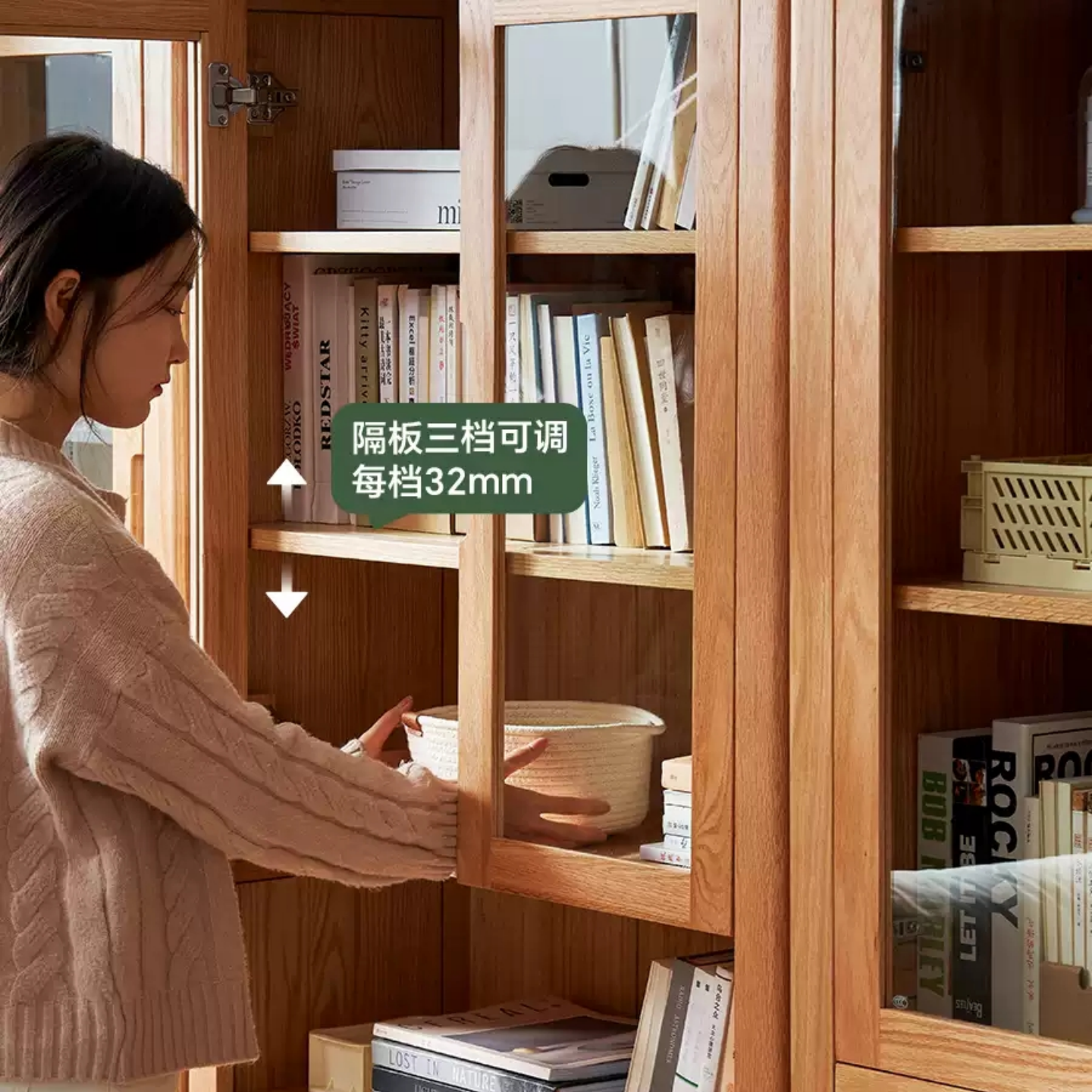 收纳柜北欧实木书橱橡木