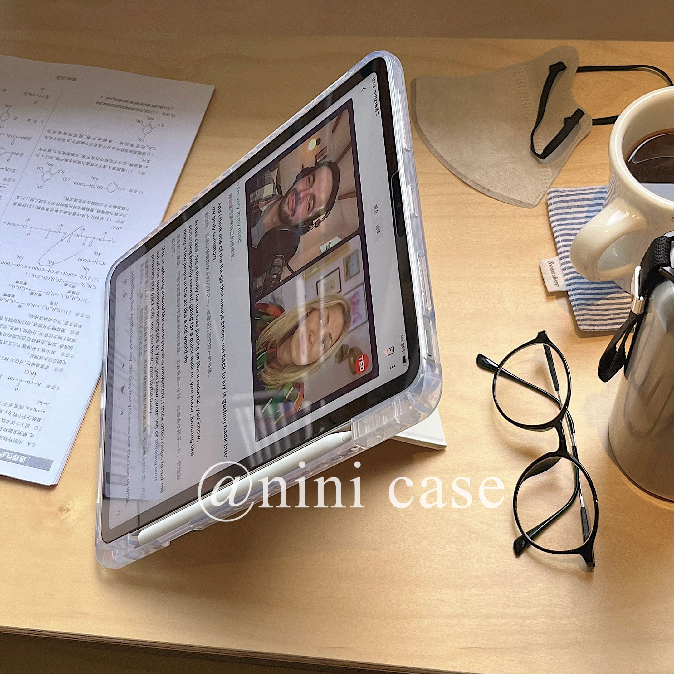 📚 nini/星星背卡+同款贴纸Y+3折ipad平板保护套pro11/a16/11代翻盖air45/10.9寸亚克力硬壳10.2寸/5笔槽mini7