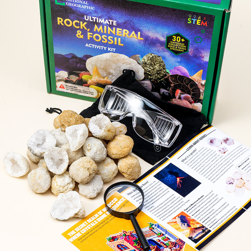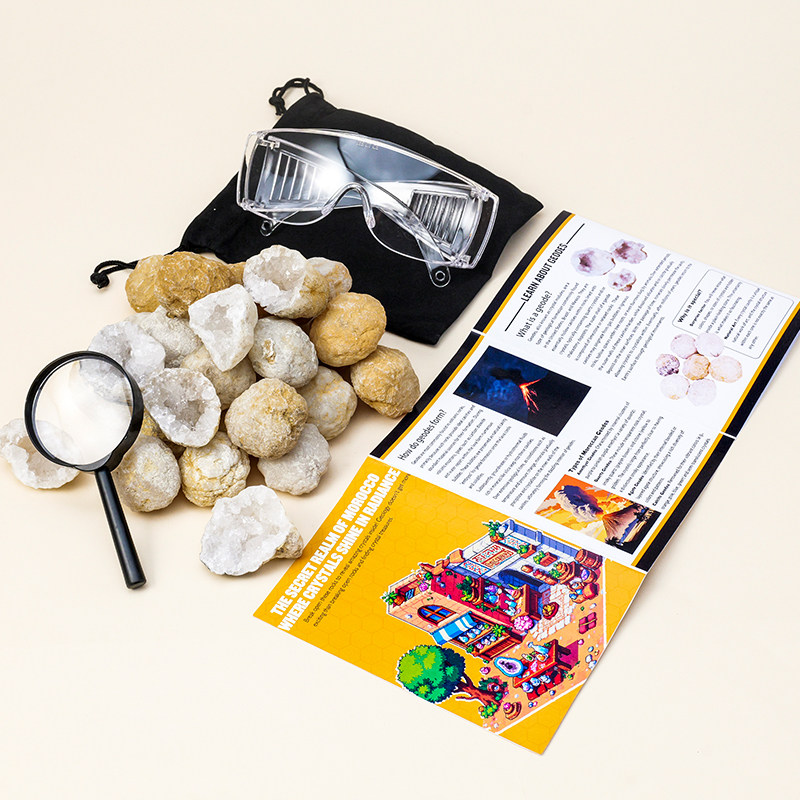 📚 天然摩洛哥玛瑙晶洞套盒白水晶洞矿物晶体标本科普教学聚宝盆挖掘
