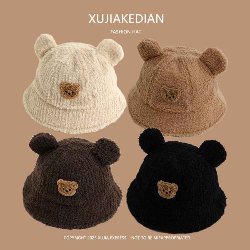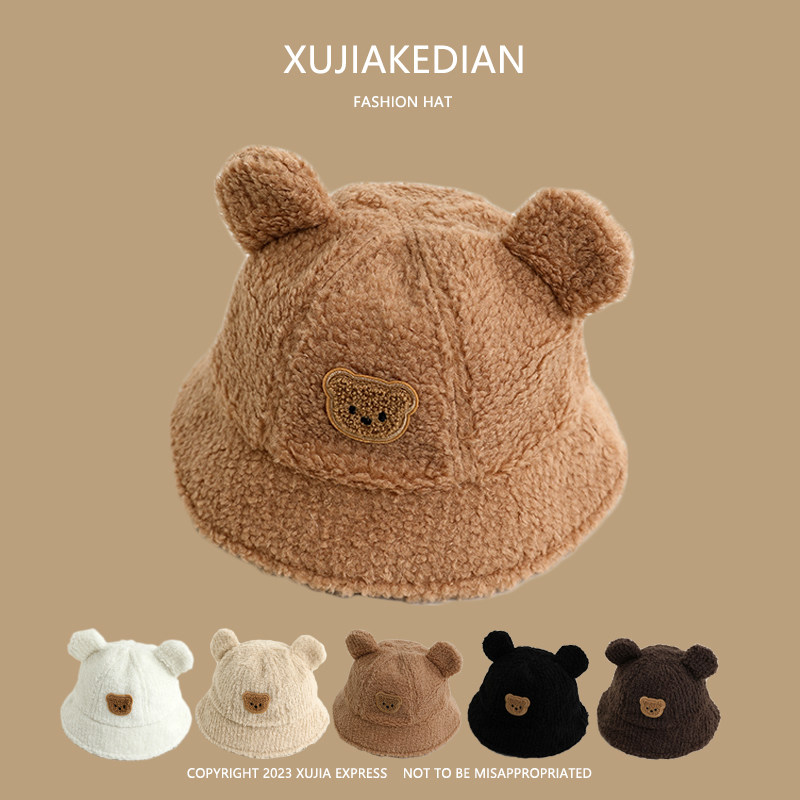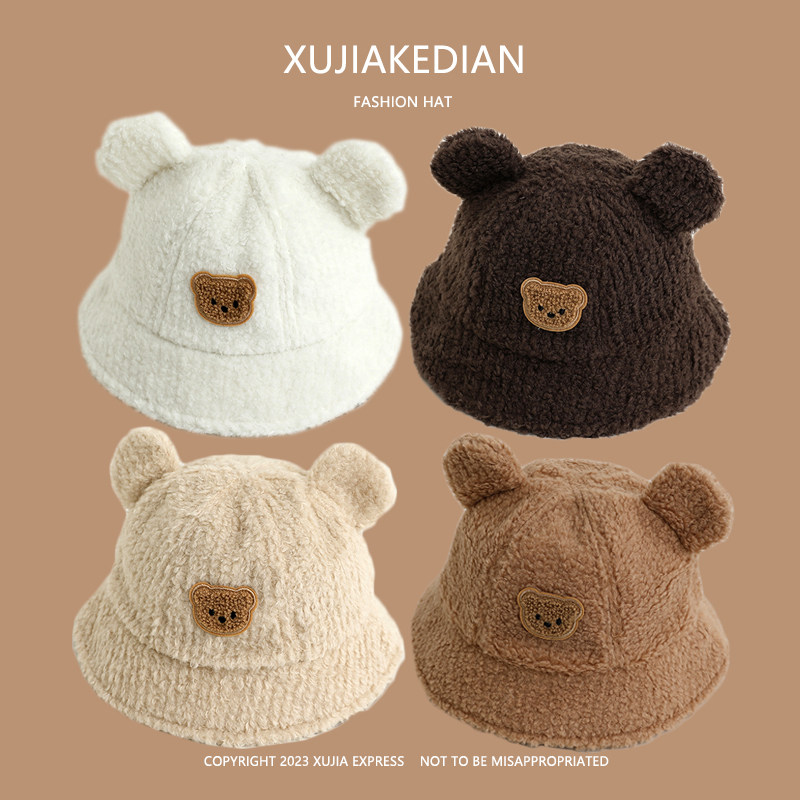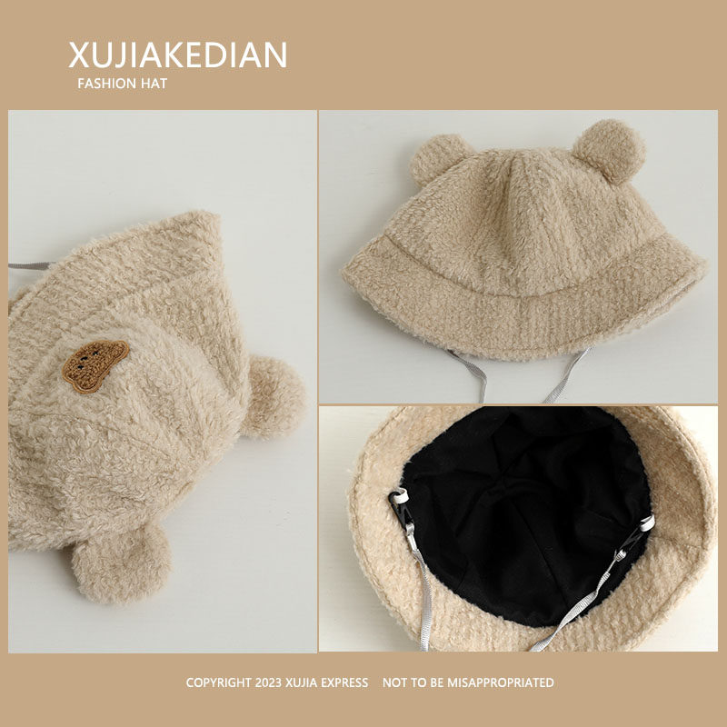📚 小熊儿童帽子秋冬宝宝毛绒帽保暖防寒防风盆帽男童女童渔夫帽可爱