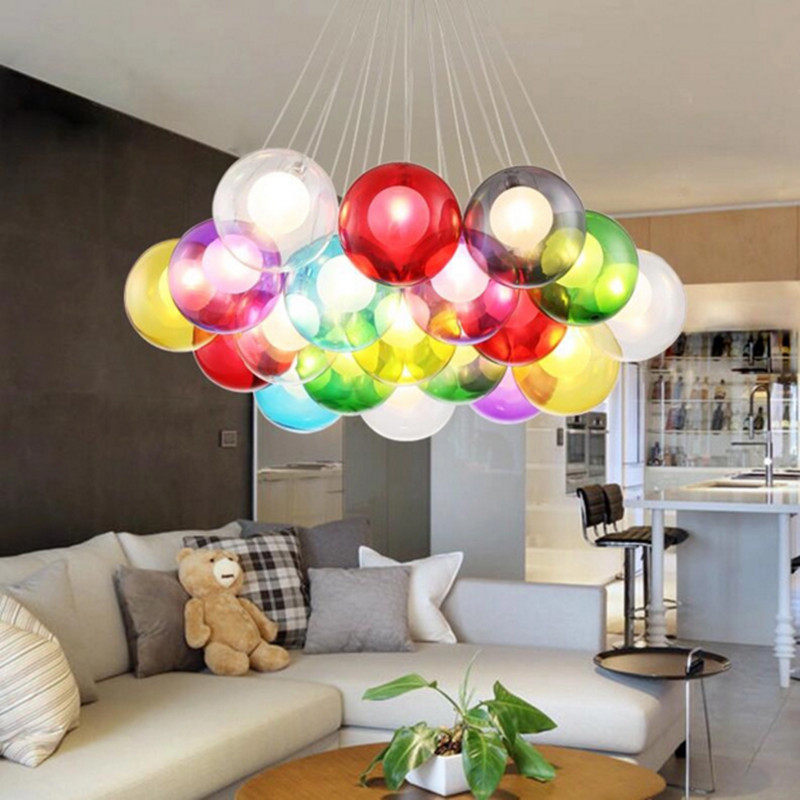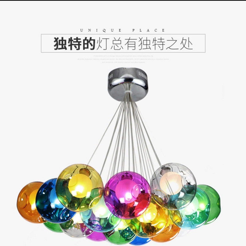 📚 创意个性北欧餐厅吊灯咖啡厅儿童房彩色玻璃泡泡球吊灯 厂家直供