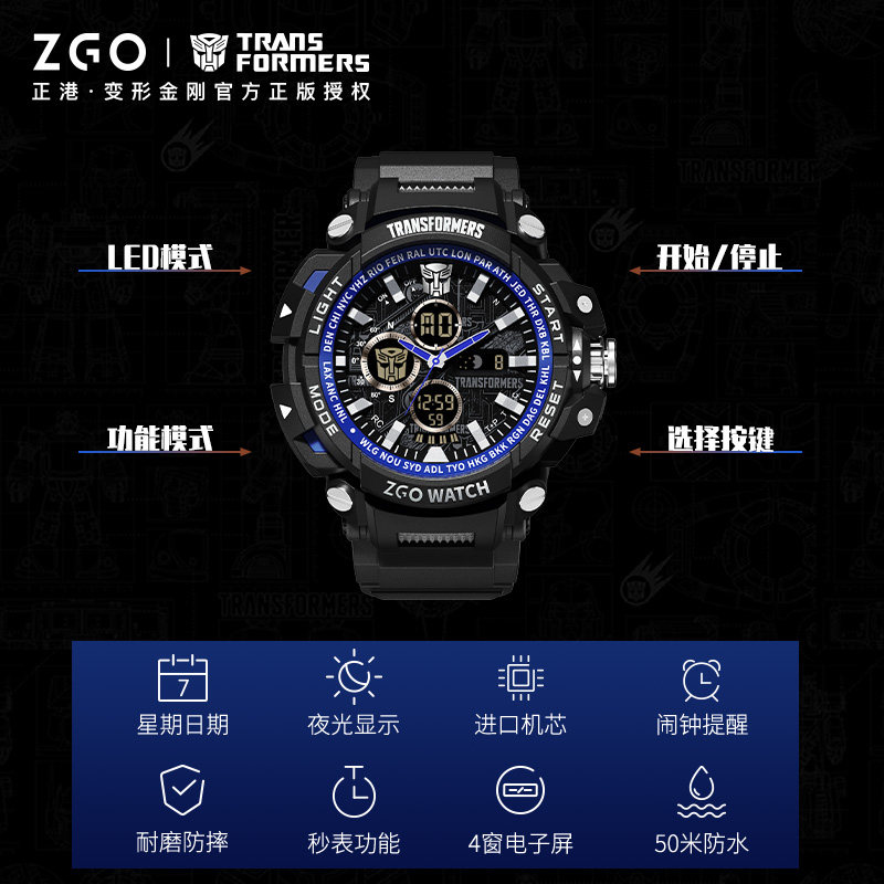 📚 正港ZGOx变形金刚手表男款初高中学生儿童运动防水电子表数字显示
