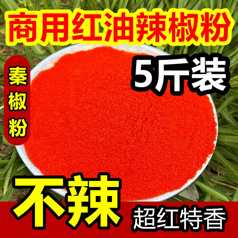 📚 秦椒线椒甜椒辣椒粉 商用5斤包邮不辣特香红油面筋调味料细辣椒面
