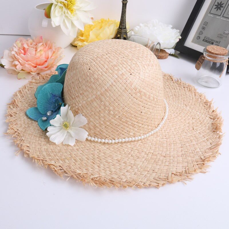 📚 包邮海边度假小沿边拉菲草草编帽子沙滩帽女款遮阳帽手工草帽