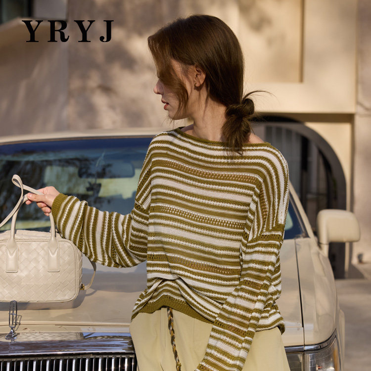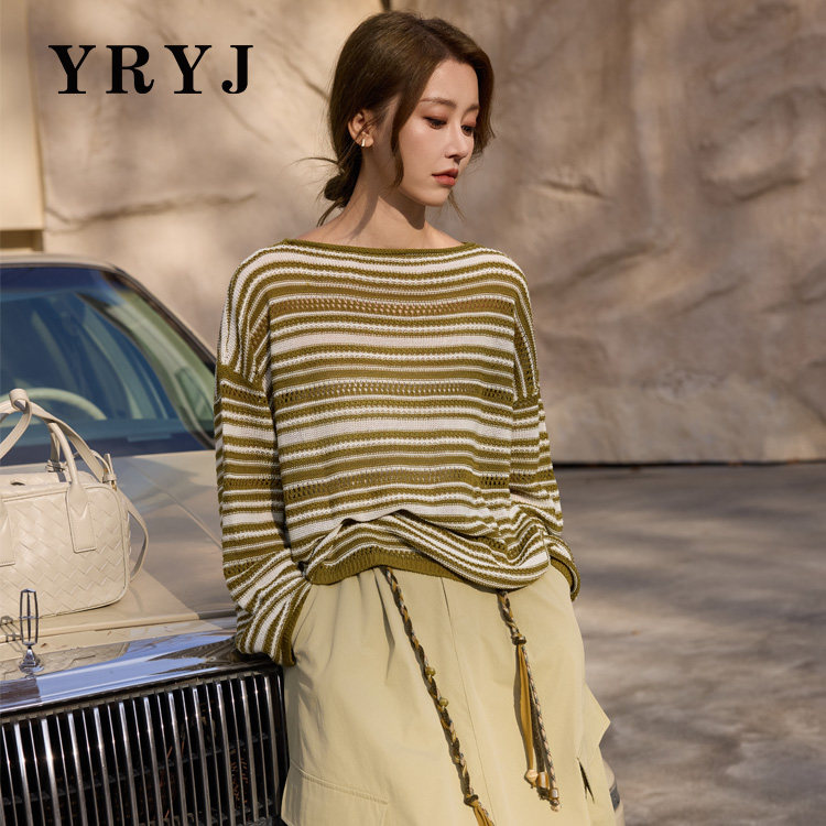 📚 YRYJ春季上新慵懒风镂空条纹圆领长袖针织衫女商场同款6461002725