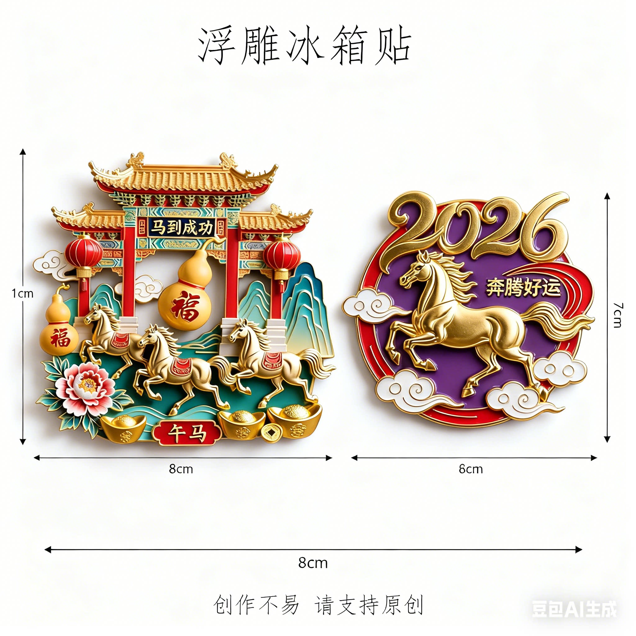📚 马到成功2026新款新年冰箱贴策马奔腾创意磁吸式冰箱贴年货纪念品