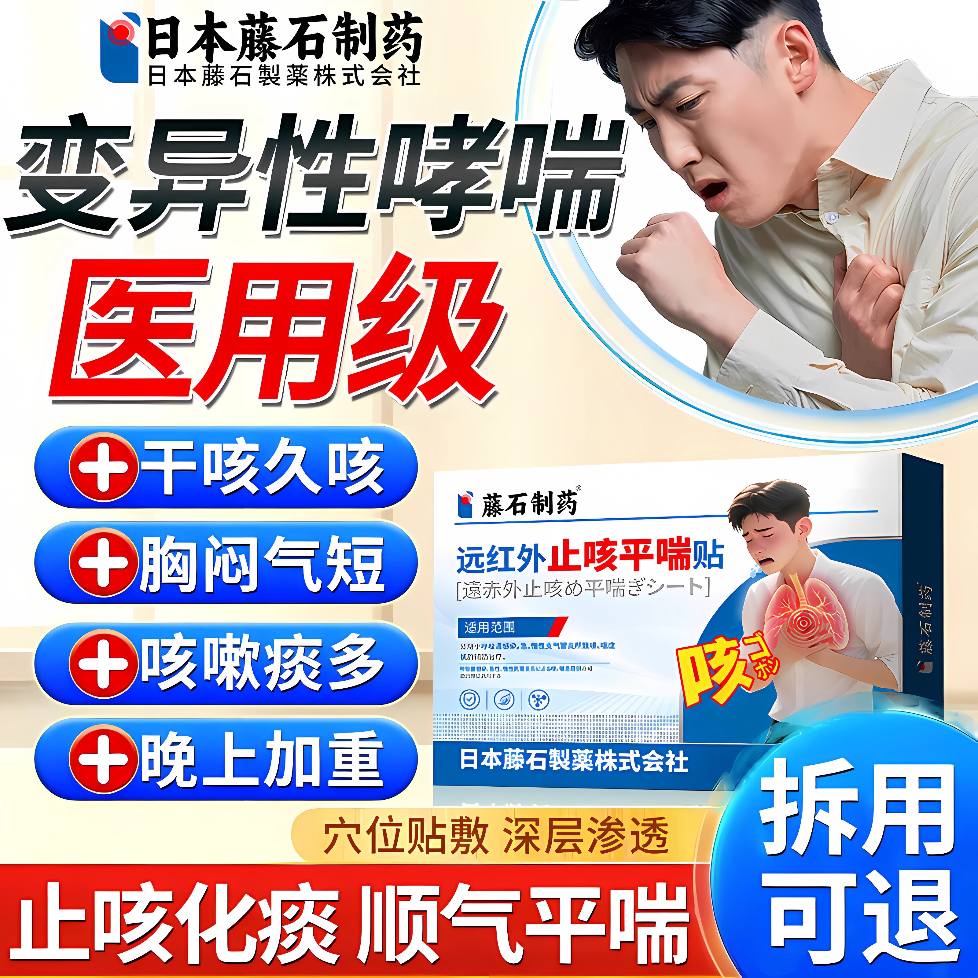 📚 变异性哮喘咳嗽专用远红外止咳平喘贴支气管炎干咳久咳喷雾剂ZR