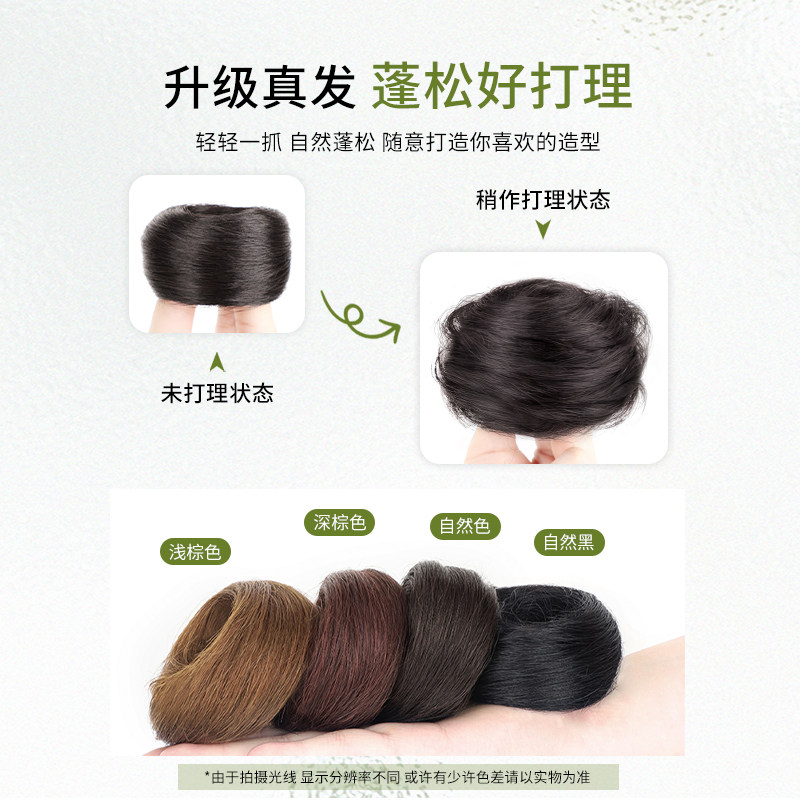 📚 低扎真发丸子头假发发圈盘发器假发包假发圈花苞全真人发假丸子头