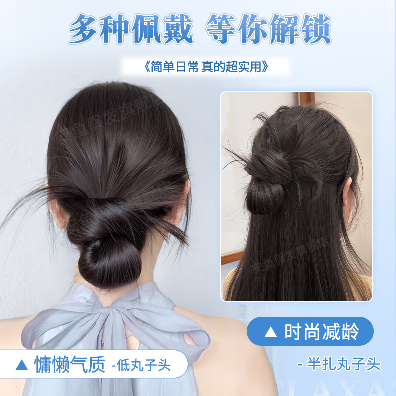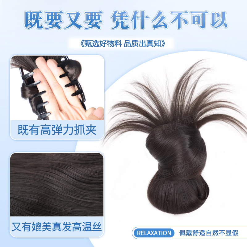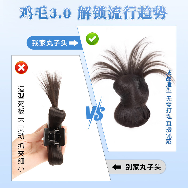 📚 低扎气质丸子头抓夹韩系慵懒增发量仿真人发鸡毛头盘发半扎发包
