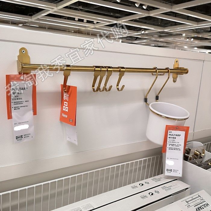 📚 IKEA宜家 胡尔塔普 挂杆 光泽黄铜色长厨房墙面收纳挂件 国内代购