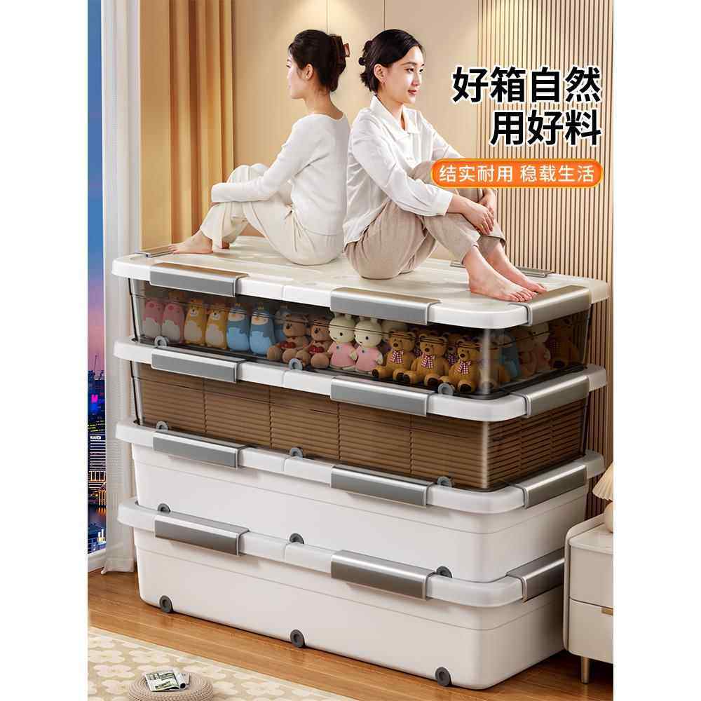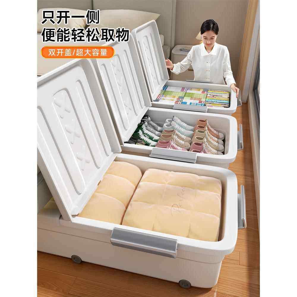 📚 床底滚轮收纳箱扁平带滑轮放床下大容量衣服整理盒塑料储物箱周转