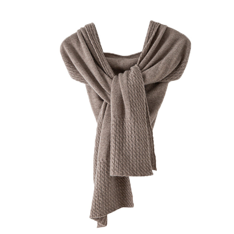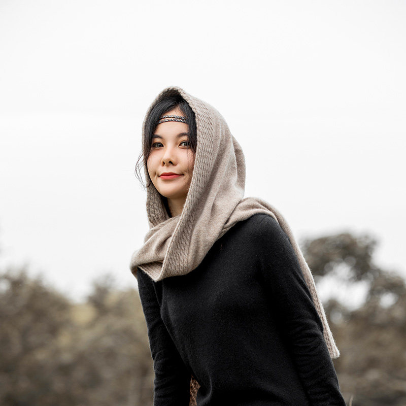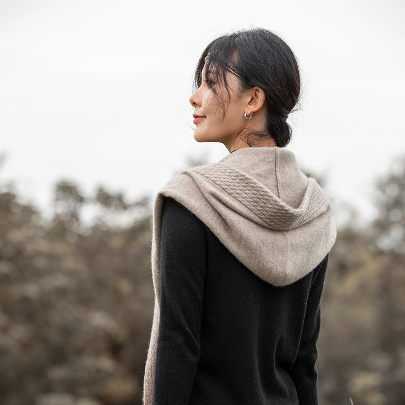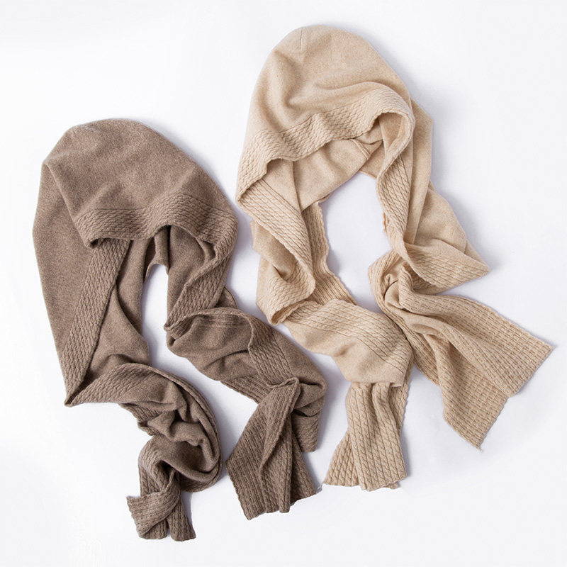 📚 时尚帽子女冬新款绞花羊绒帽子围巾一体加厚针织连帽围脖两用保暖