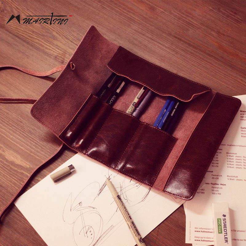 📚 马蒂尼复古高档牛皮笔袋红胖子水彩笔收纳袋油画笔黑天鹅水粉笔丙烯收纳包调色彩颜料上色画笔笔刷美术生专用