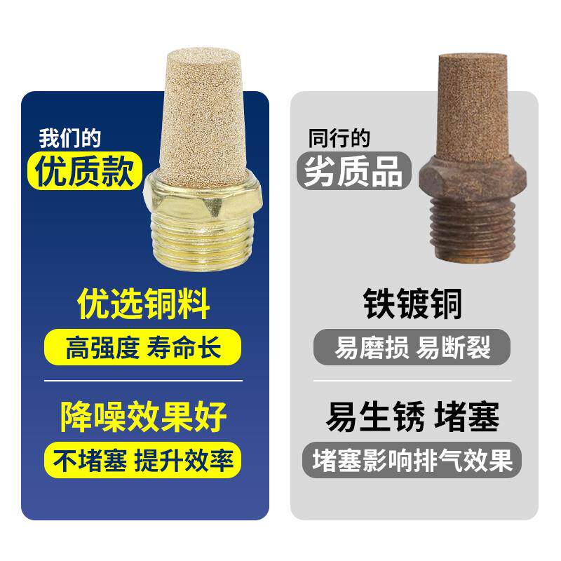 📚 气动铜消音器BSL-M5平头消音器BSLM-01/02/03/04电磁阀排气静音器