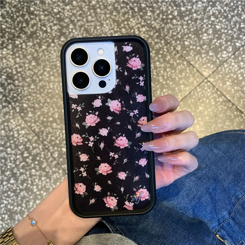 📚 Wildflow壳粉色玫瑰适用苹果17promax壳iphone16pro/15plus黑粉色花朵14蓝丁香花全包硅胶防摔欧美时尚13