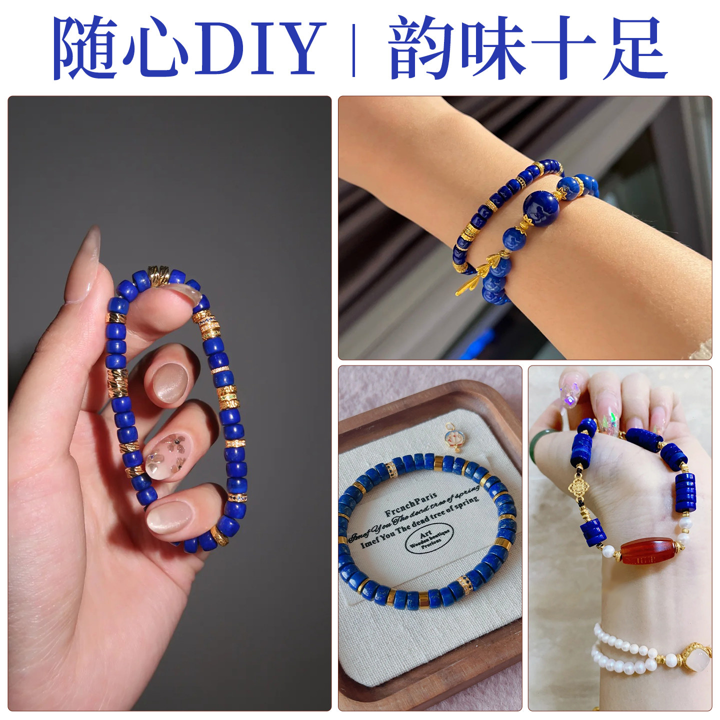 📚 天然青金石隔片直切药片散珠子diy串珠手串手链饰品配件文玩垫片