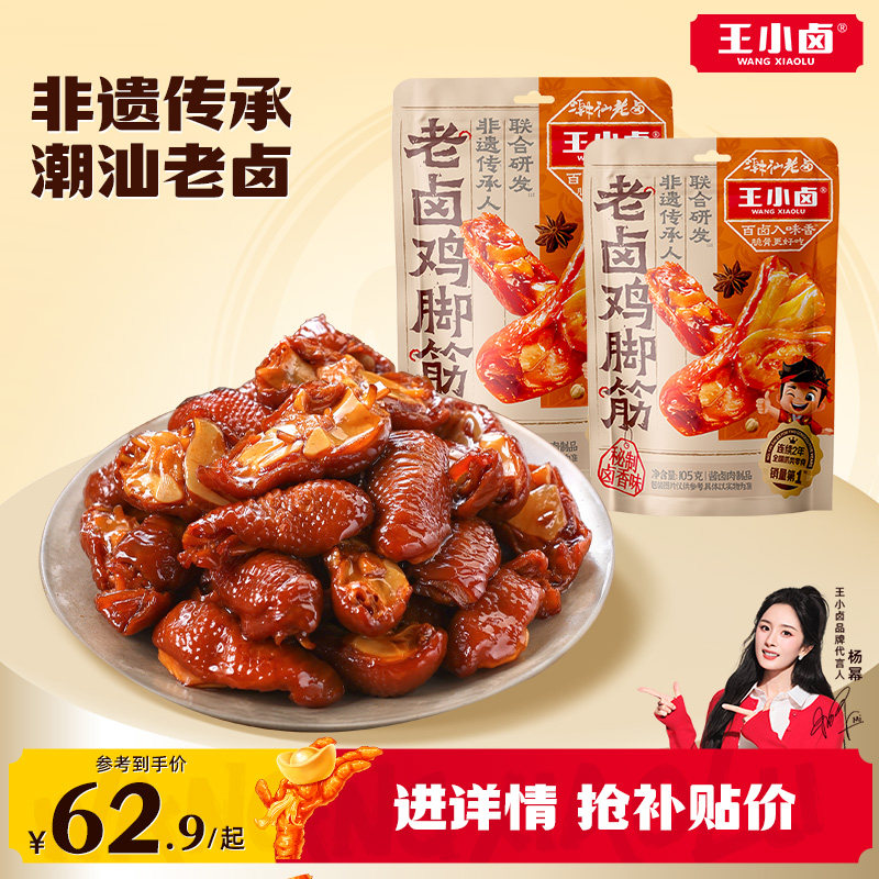 📚 王小卤鸡脚筋老卤鸭爪掌鸡脆骨卤味解馋休闲小吃追剧零食下酒菜