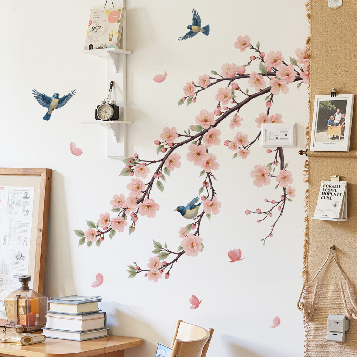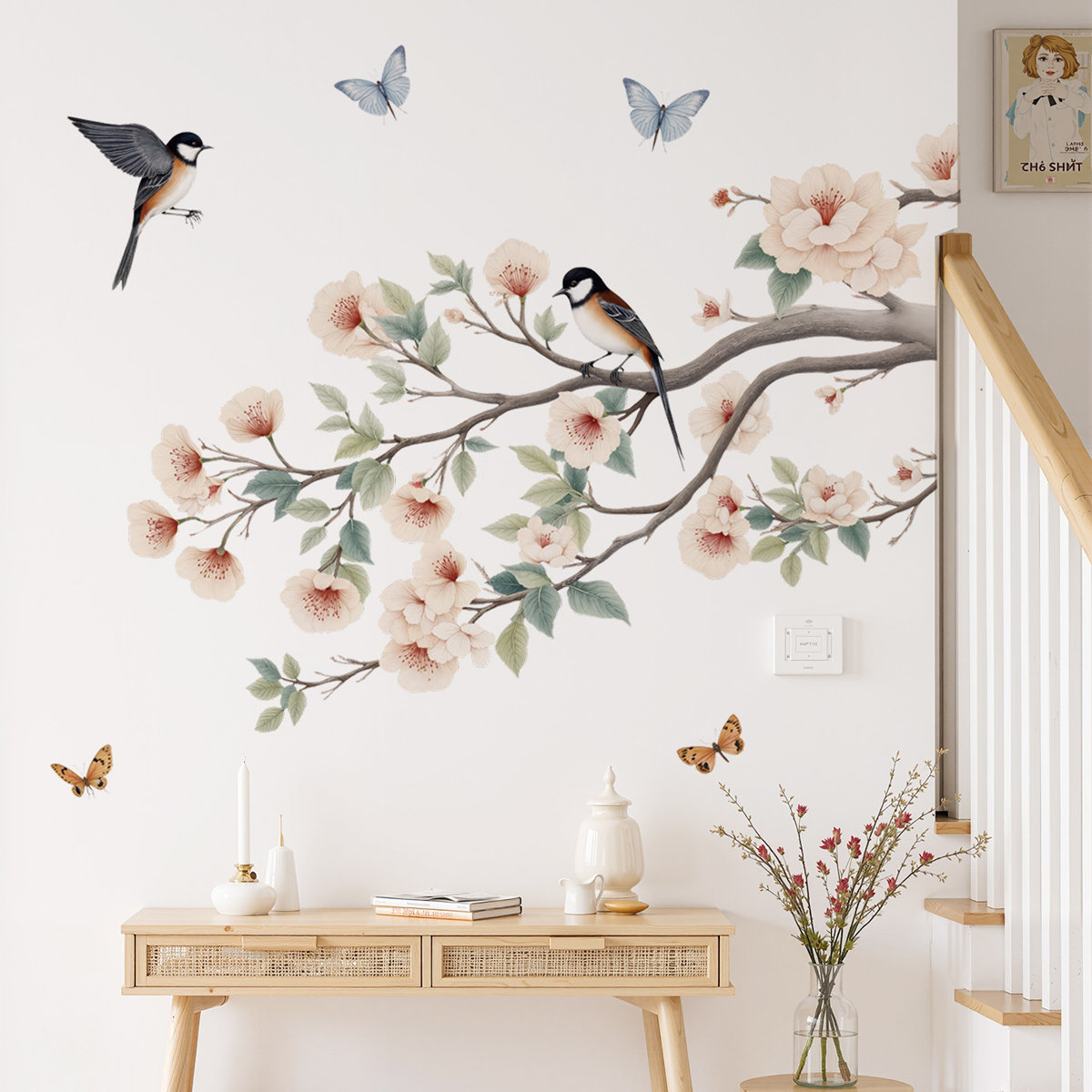 📚 枝头飞鸟写意花朵墙贴纸自粘房间装饰贴画布置出租房改造可撕墙纸