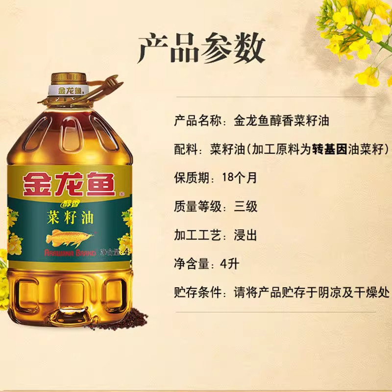 📚 金龙鱼醇香菜籽油4L 桶装三级食用油家用炒菜正品