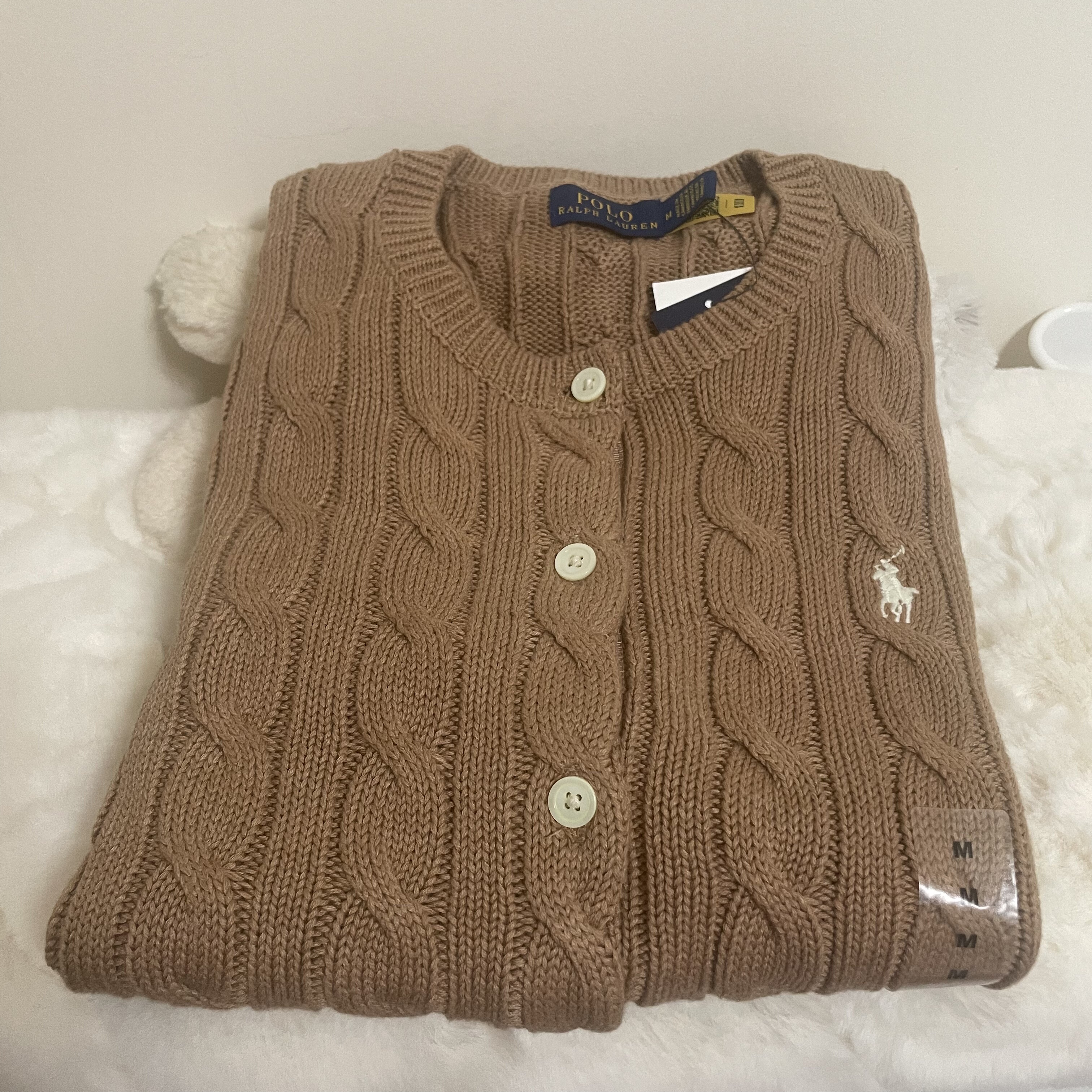 📚 Polo Ralph Lauren 奥莱款女士纯棉刺绣绞花长袖针织开衫毛衣外套