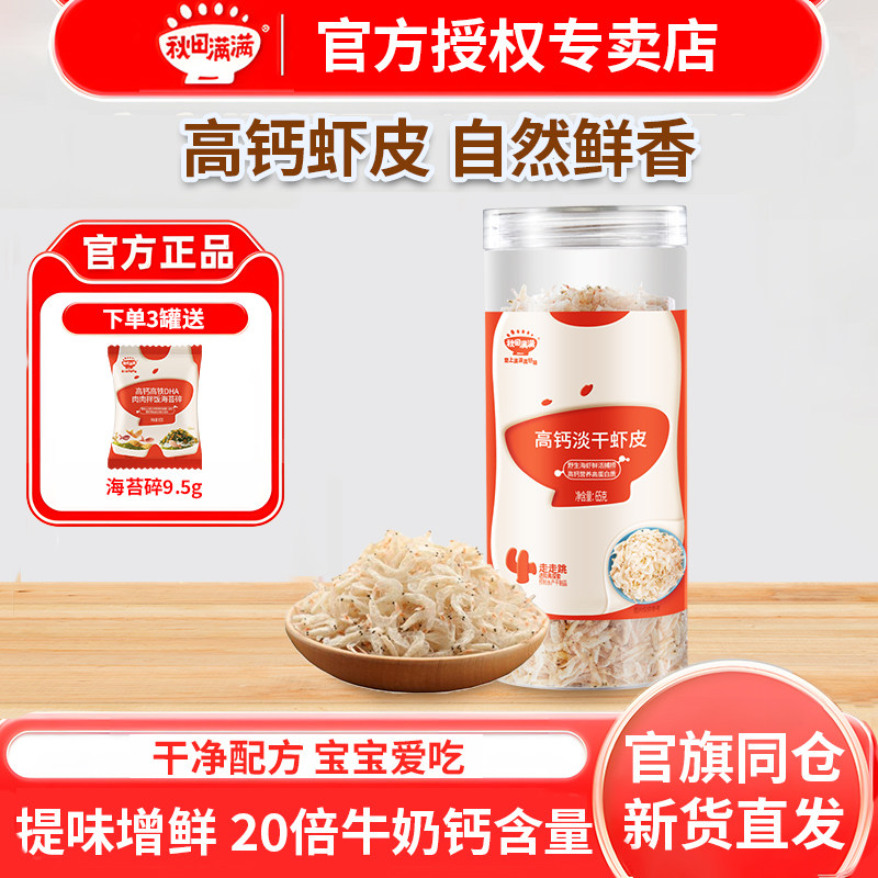 📚 秋田满满高钙虾皮干货淡干虾米无添加食盐送宝宝婴儿幼儿童辅食谱