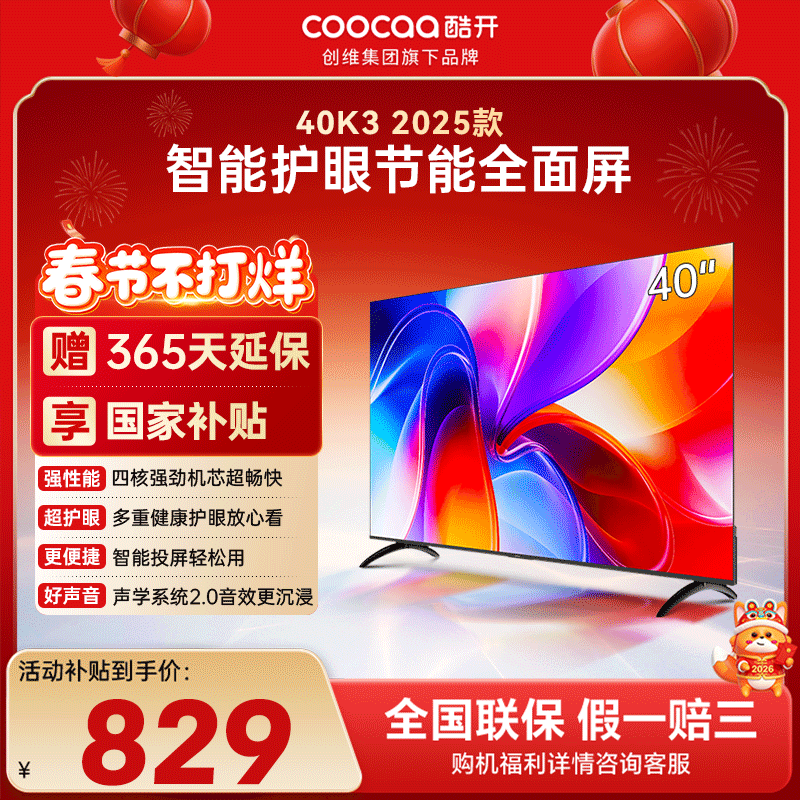 🎈如果你也是家电爱好者,那么这款创维酷开K3 25款40英寸高清家用液晶屏幕绝对是你的不二之选!赶快行动起来吧,抓住这次补贴活动的机会,让你的家焕然一新!