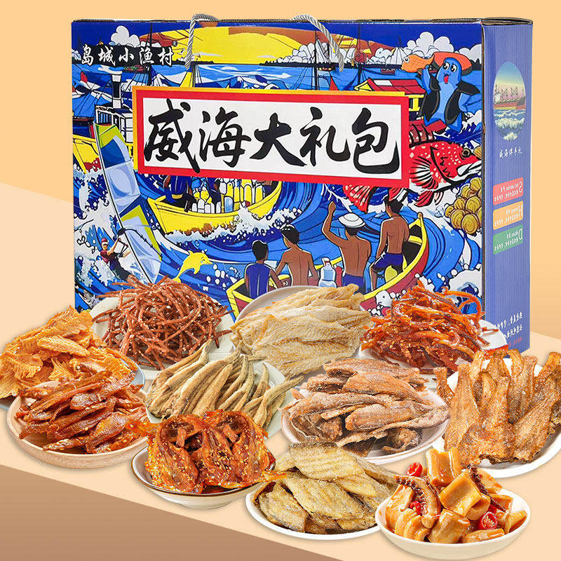 📚 岛城小渔村海味零食缤纷礼盒威海旅游伴手礼年货送礼即食海鲜礼盒