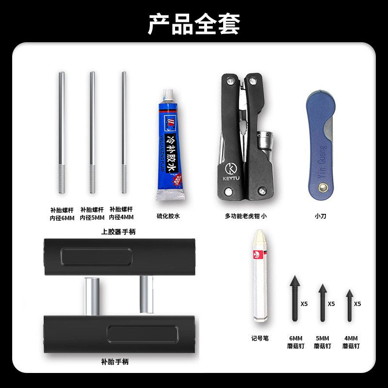 📚 科惟途摩托车补胎工具套装微创摩旅电动车便携式真空胎长效蘑菇钉