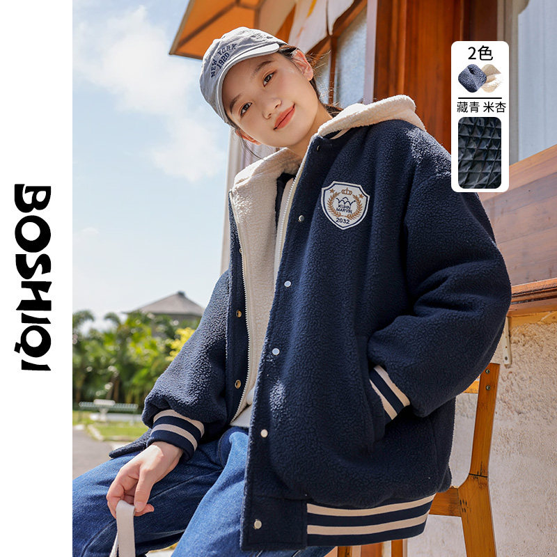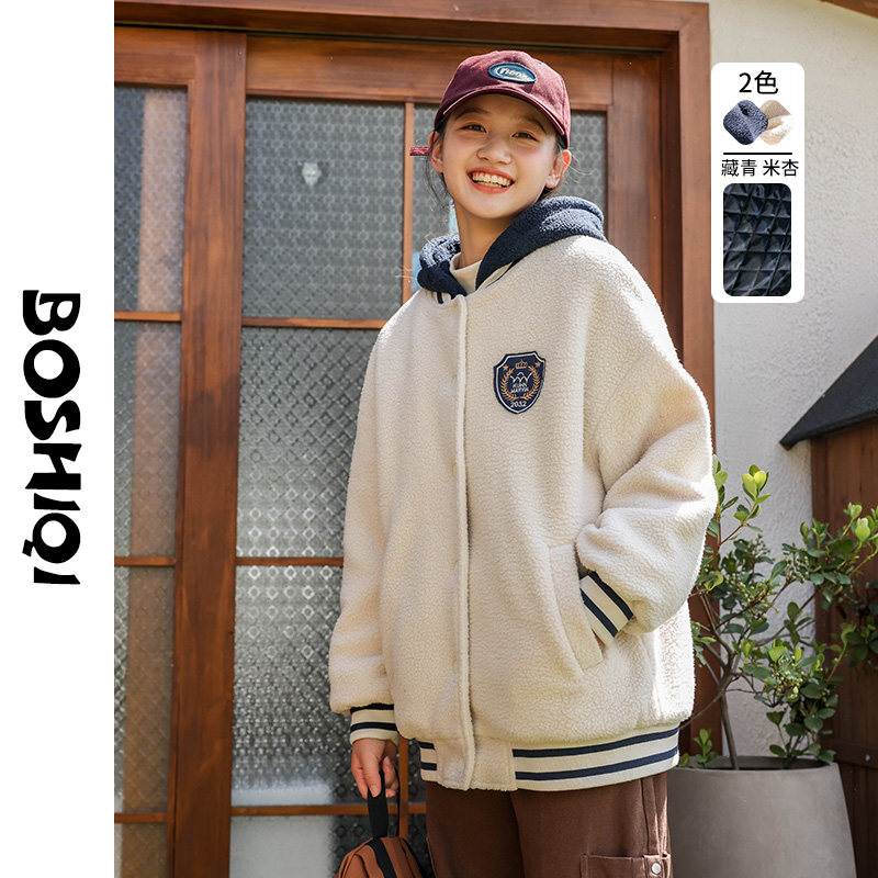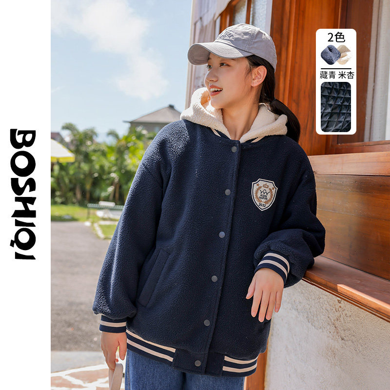 📚 高中生夹棉加厚外套初中学生秋冬装新款2025大童仿羊羔毛绒少女孩