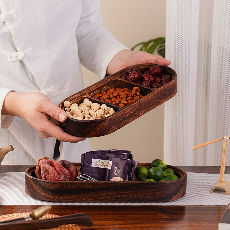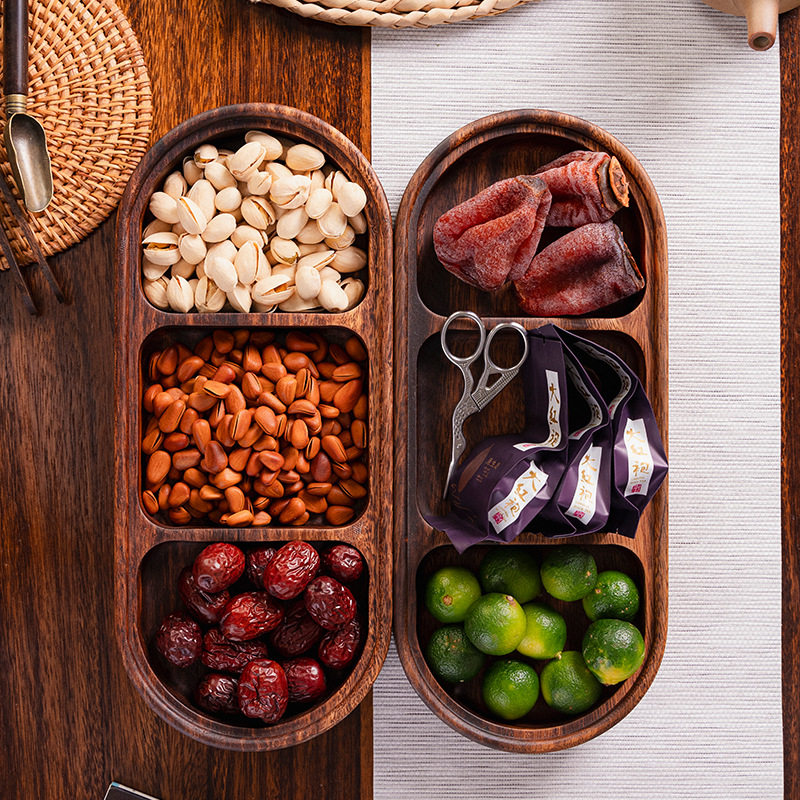 📚 南美胡桃木分格托盘小餐盘干果花生收纳盘相思木餐厅三宫格上菜盘