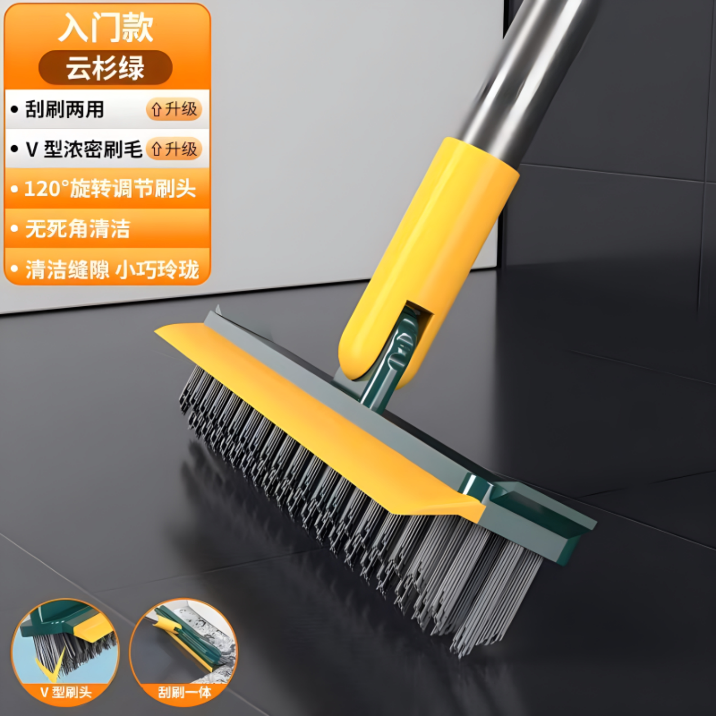 📚 多功能卫生间刷子地刷缝隙瓷砖地板刷长柄洗地毛刷浴室三角清洁刷