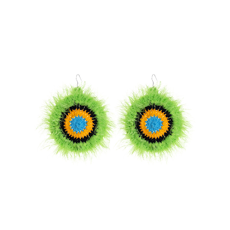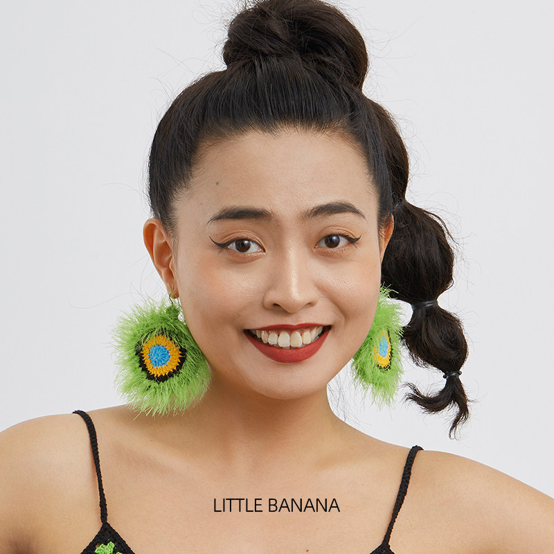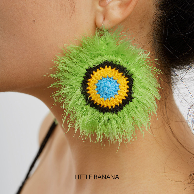📚 小黄香蕉手钩民族度假风耳饰小众复古音乐节绿色独特耳环毛绒耳夹