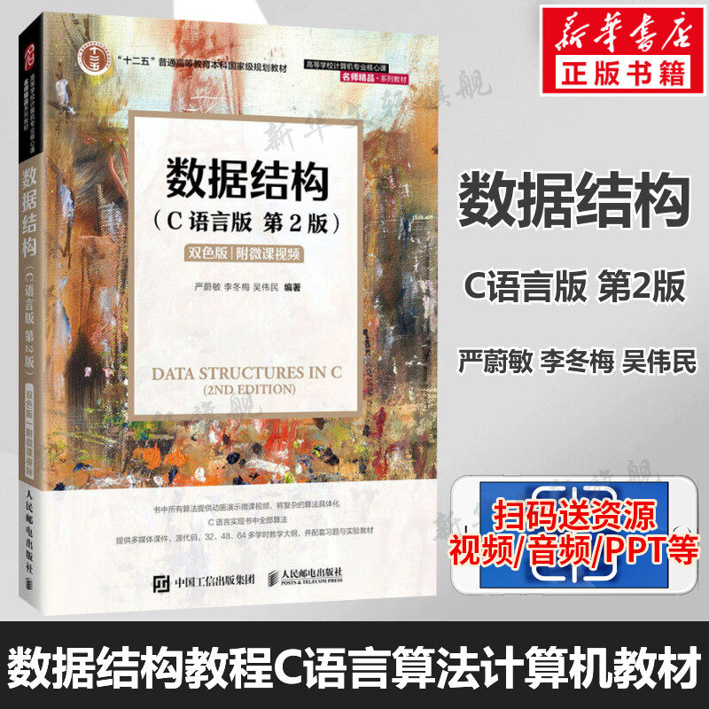 📚 正版【双色版附微课视频】数据结构c语言版严蔚敏第二版严蔚敏李冬梅吴伟民 数据结构教程算法教材人民邮电出版社 计算机考研408