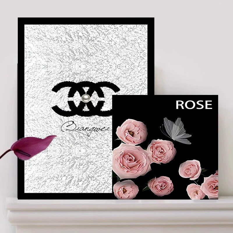 📚 轻奢高级感浪漫玫瑰花斗柜客厅沙发背景叠放电视柜鞋柜摆画装饰画