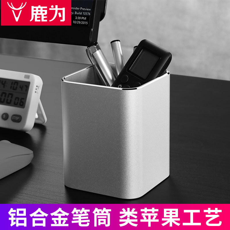 📚 鹿为 轻奢现代高级感笔筒 金属简约大容量笔桶 办公室男女学生桌面文具收纳个性创意摆件时尚定制北欧ins风