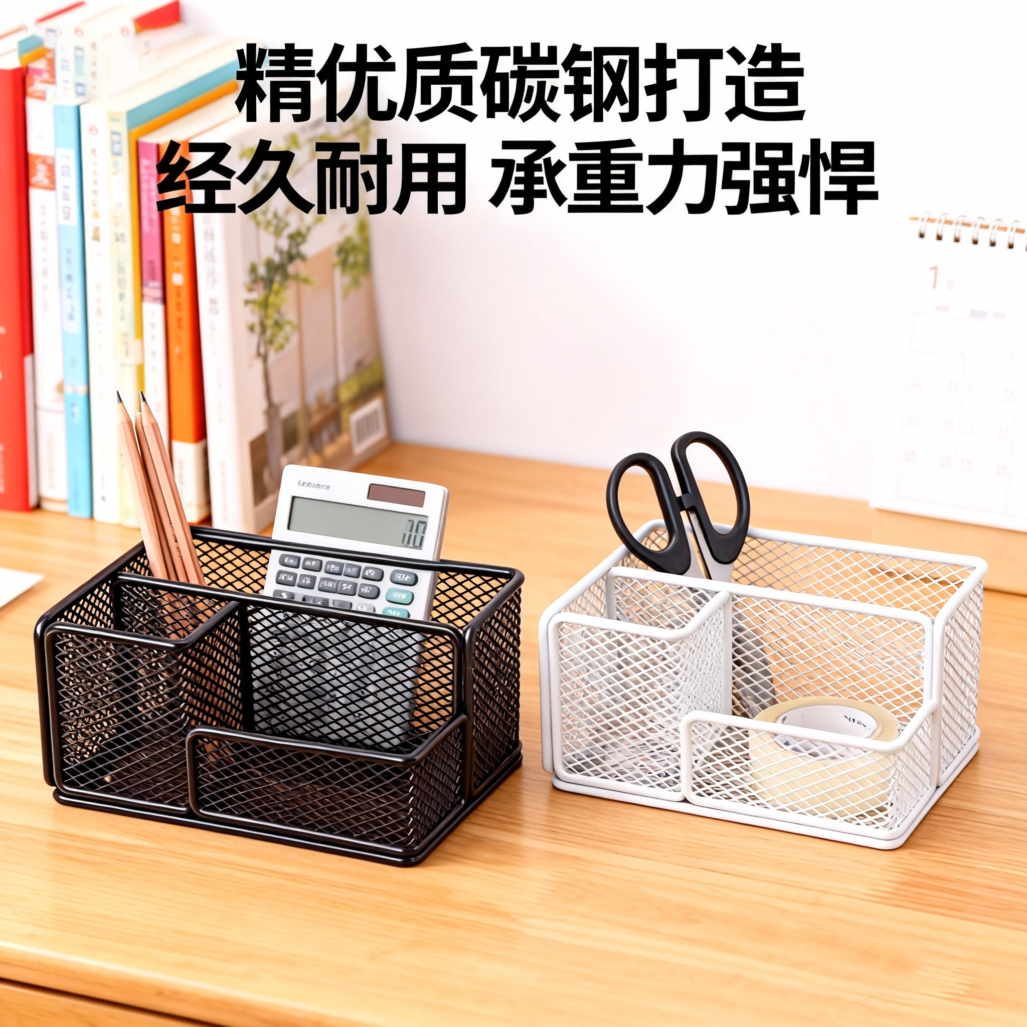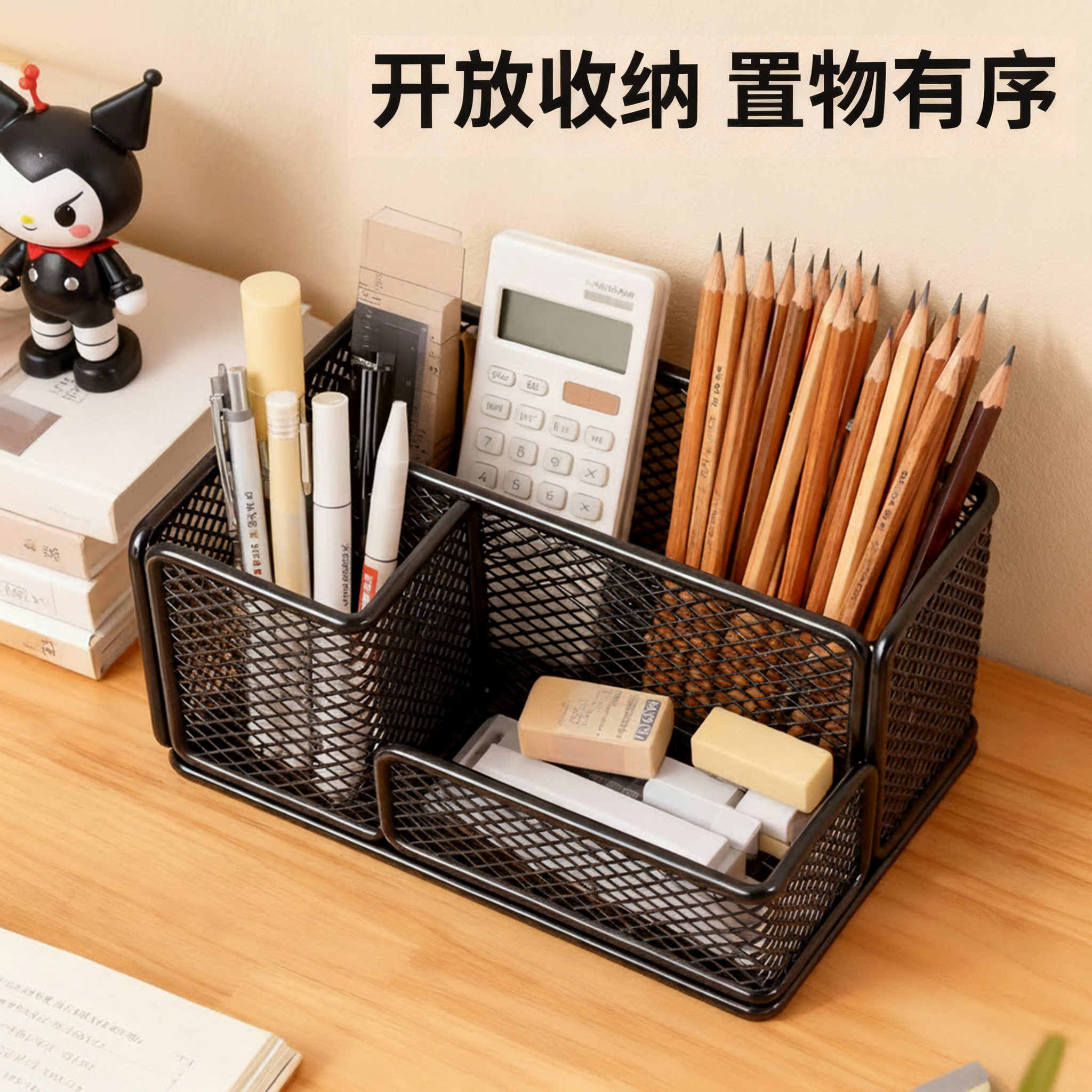 📚 办公室笔筒多功能金属收纳盒装笔放笔学生桌面文具杂物收纳摆件笔座笔架创意办公用品笔桶笔插大容量收纳多格