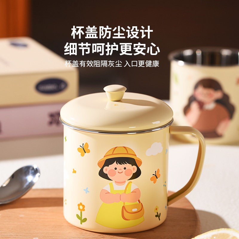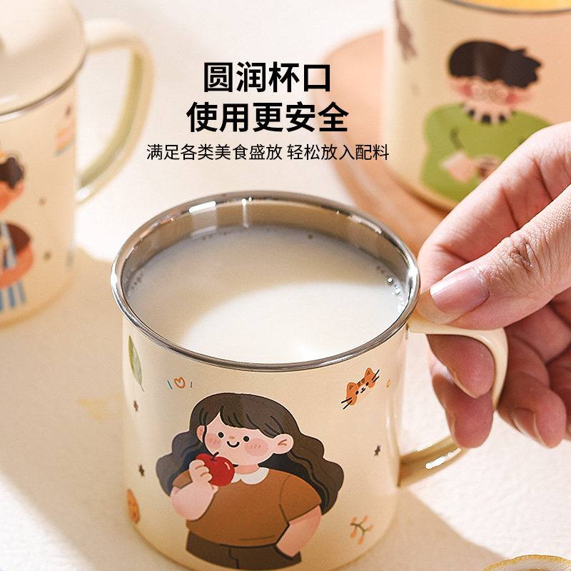 📚 316不锈钢儿童水杯家用喝水杯子宝宝敞口牛奶杯防摔带刻度马克杯