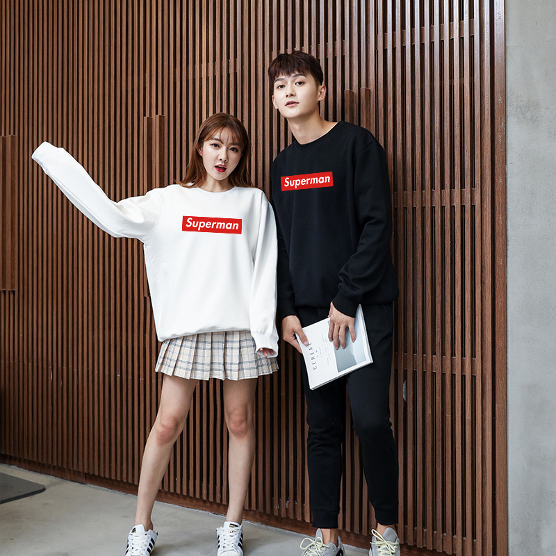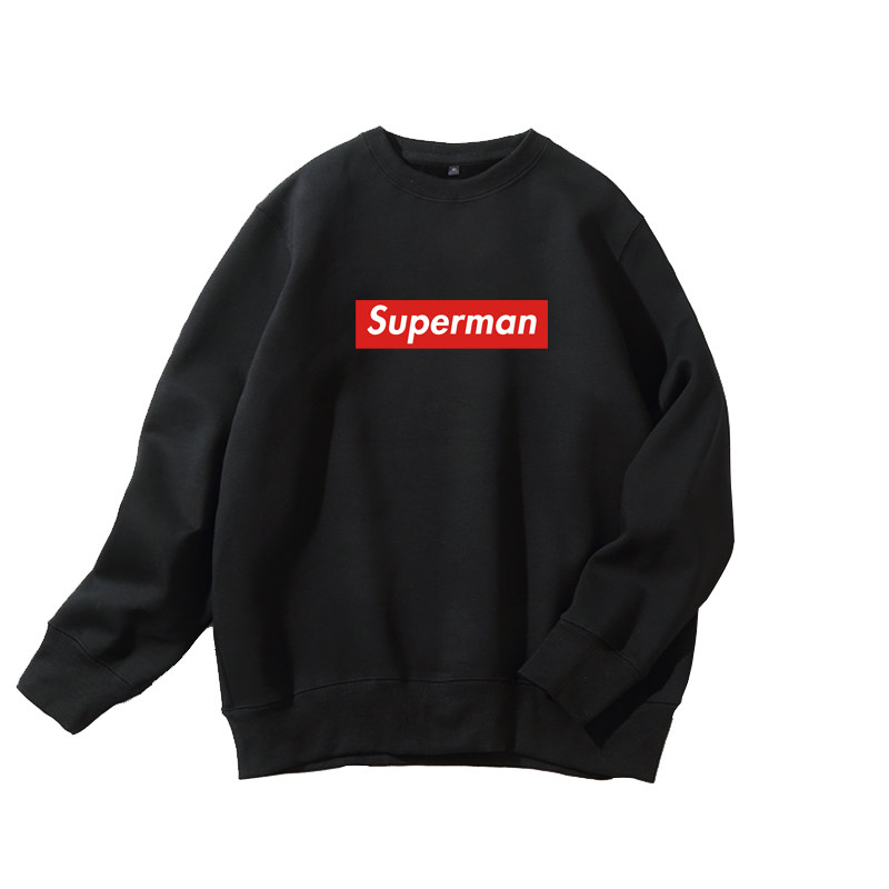 📚 黑色圆领卫衣潮超人superman宽松大码青少年男女学生加绒加厚外套