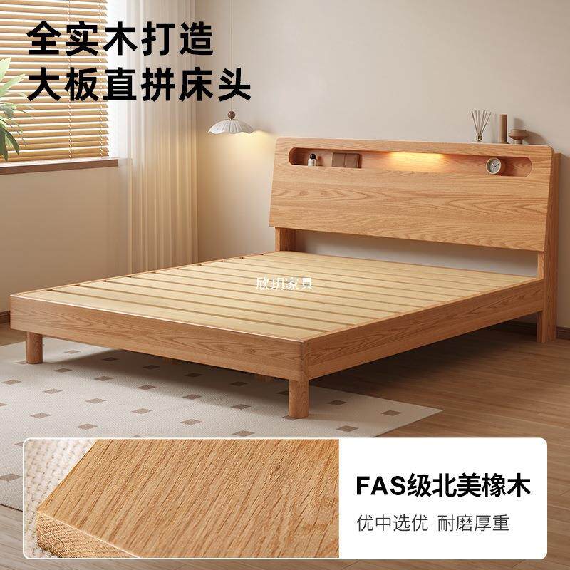 📚 纯实木床架1米人8双人床橡木全实木559691米5的家用床大床1米2单