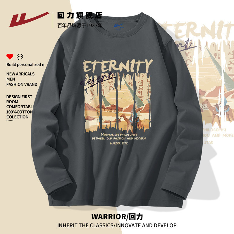 📚 回力长袖t恤男款春秋季2025新款美式个性印花男士重磅纯棉打底衫A