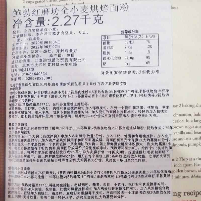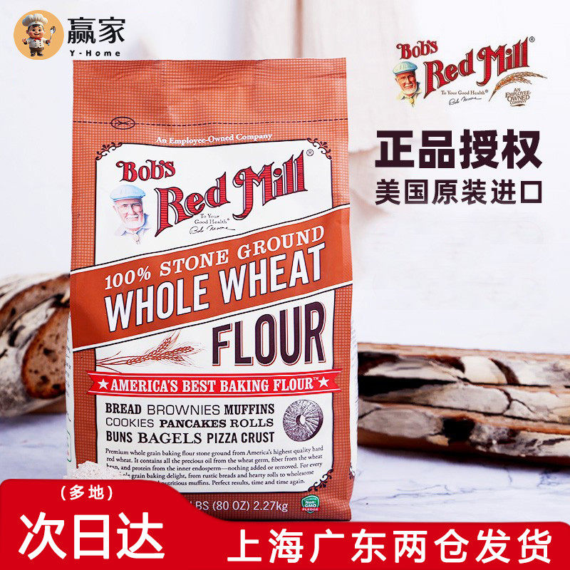 📚 美国鲍勃 红磨坊全麦粉2.27kg石磨全小麦烘焙粉面包高筋面粉原料