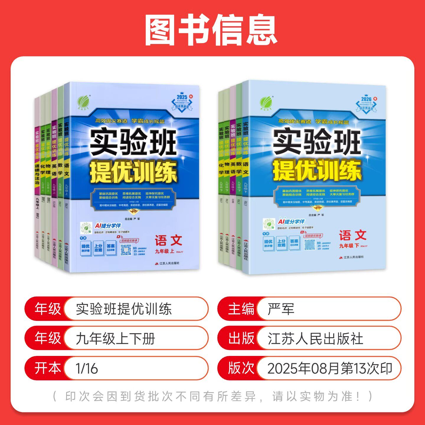 📚 2026春实验班提优训练初中七八九年级上册下册数学物理语文英语化学政治历史人教版北师译林冀教版教材同步练习册初一二三必刷题