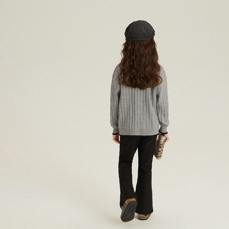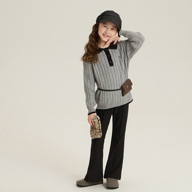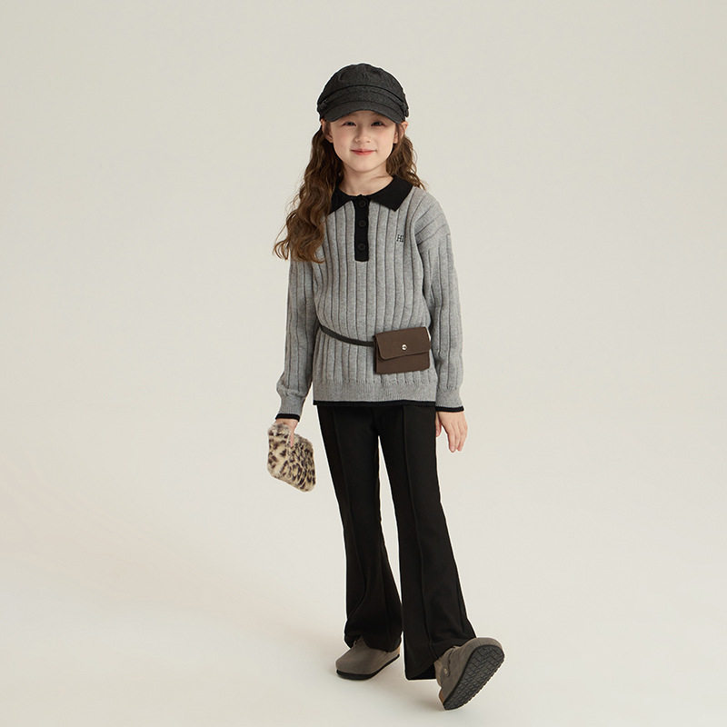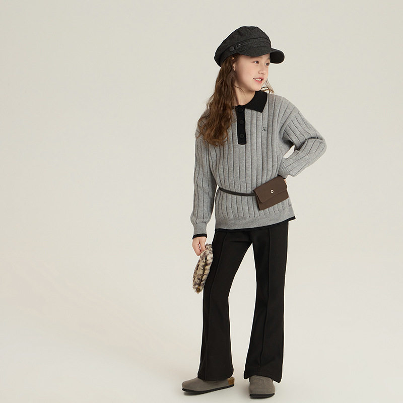 📚 女童韩版百搭翻领针织衫冬装儿童保暖内搭上衣中大童气质拼色毛衣