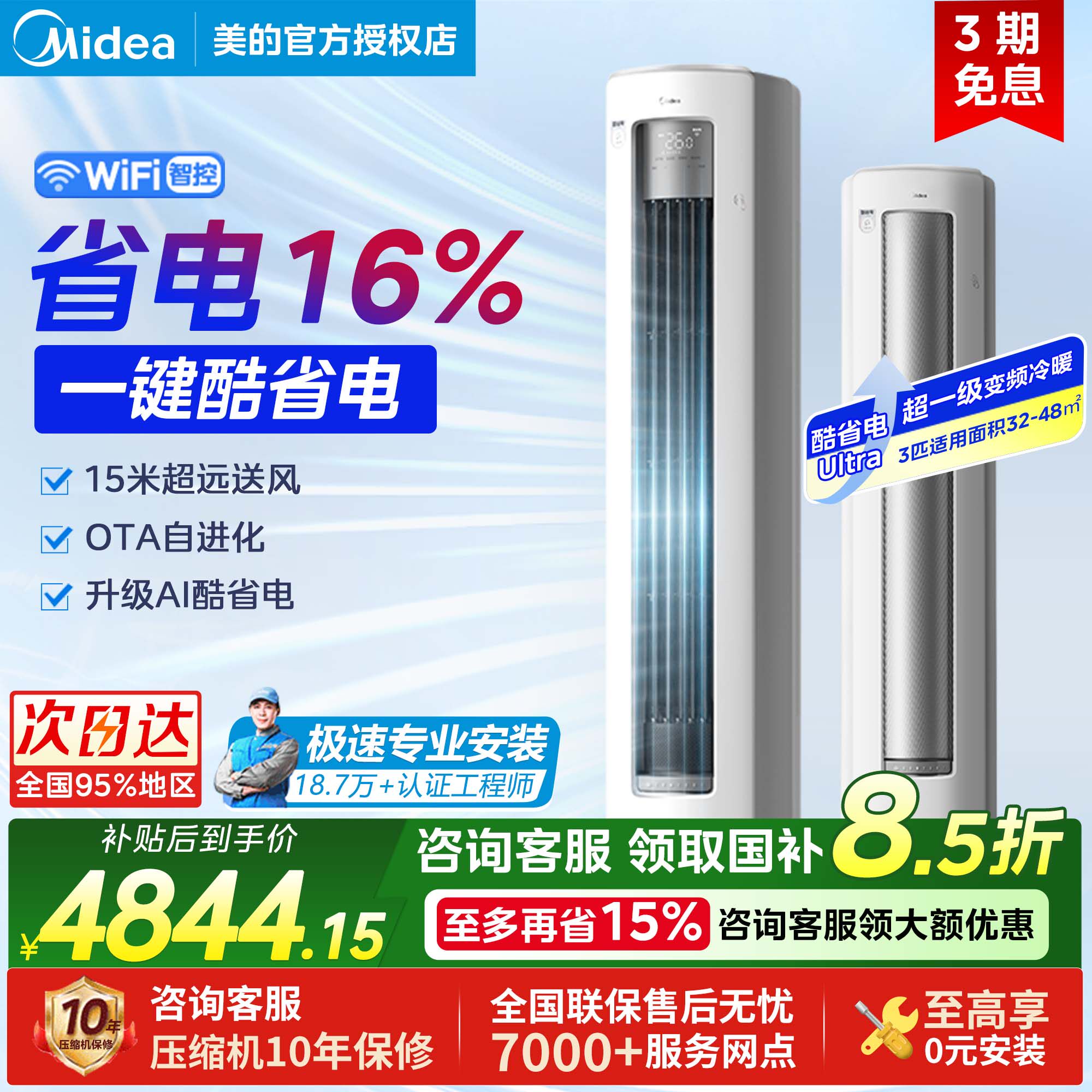 📚 美的空调酷省电Ultra大3匹一级变频冷暖省电节能家用客厅立式柜机