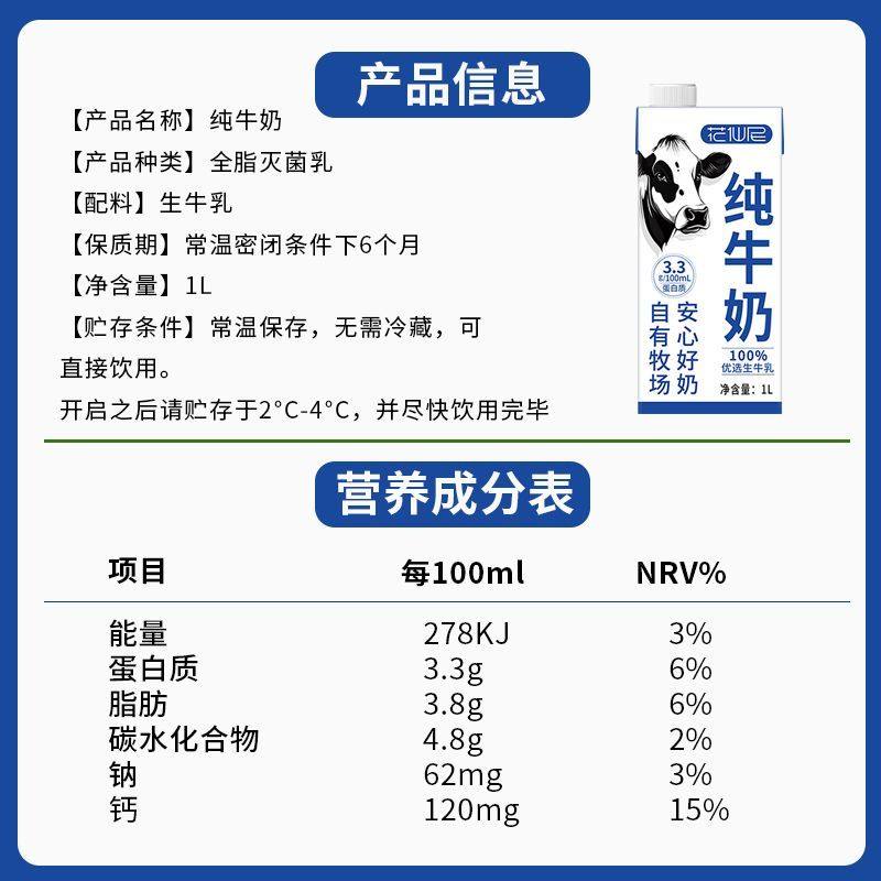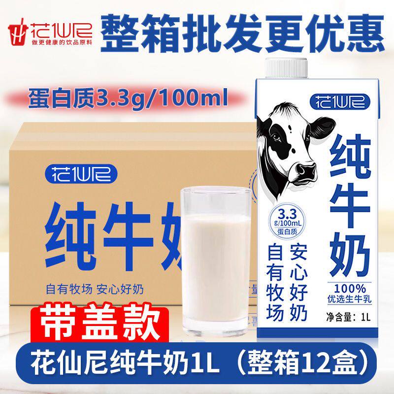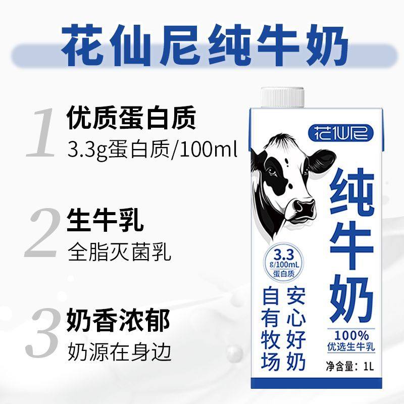 📚 花仙尼全脂纯牛奶1L*12盒学生早餐奶咖啡拉花烘焙早餐奶整箱