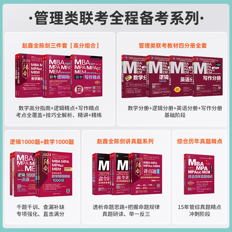 📚 高分指南新华2027陈剑数学赵鑫全逻辑精点管综199管理类联考综合能力mba考研教材2026分册1000题讲真题会计memmpa英语二基础写作