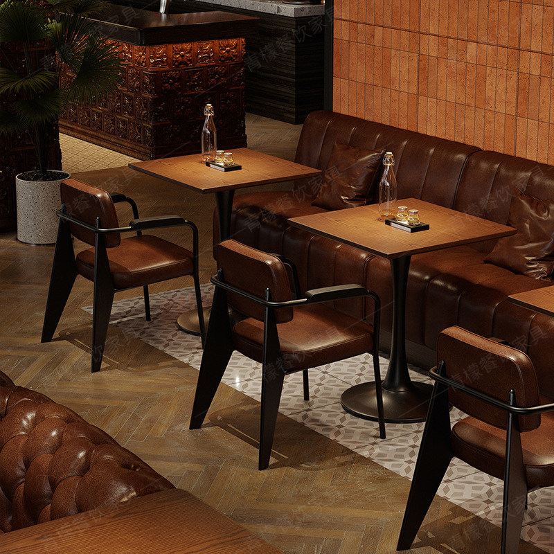 📚 复古清酒吧肯德基辛巴克桌椅组合咖啡奶茶西餐厅餐吧商用卡座沙发